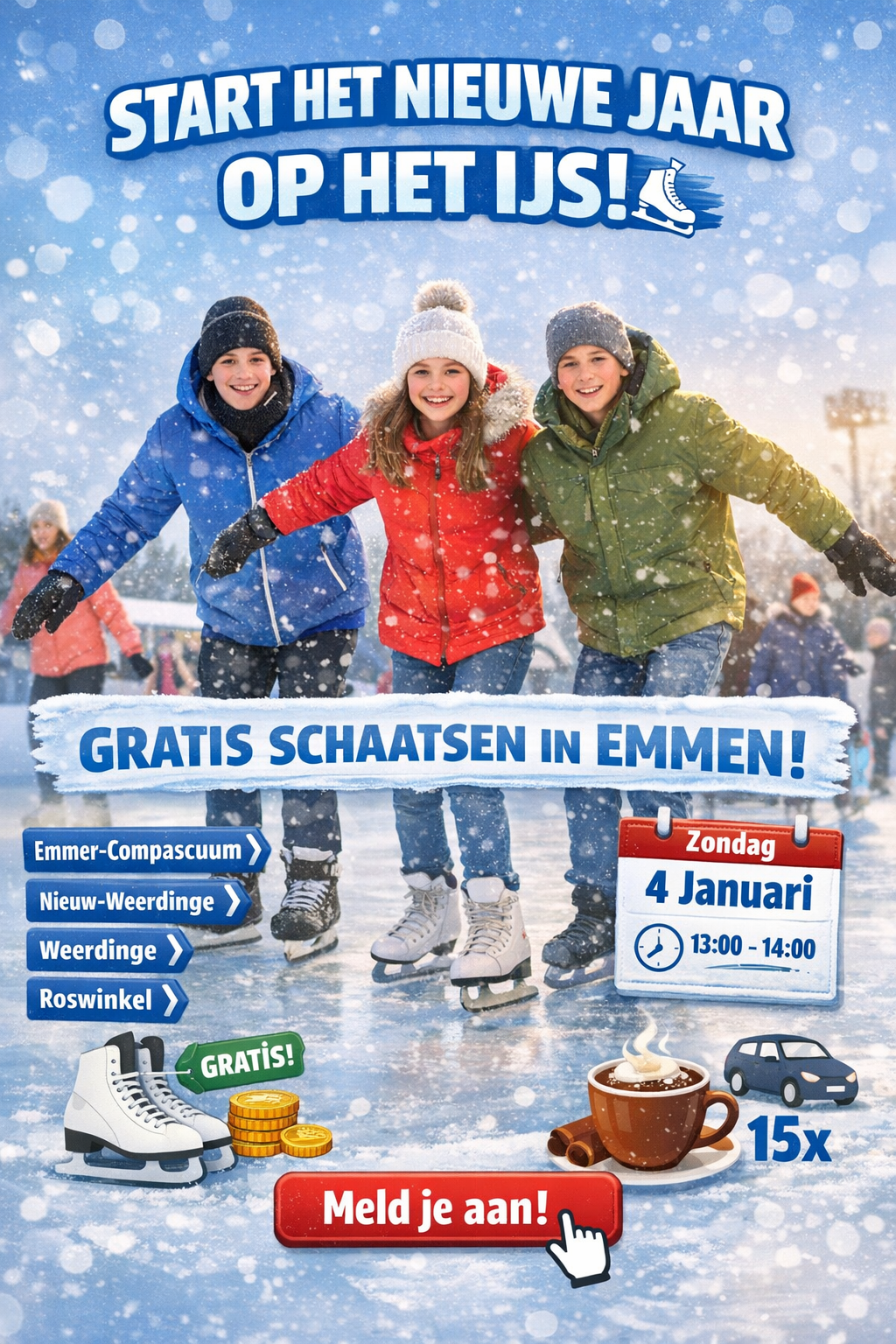 Ga gezellig mee schaatsen op de ijsbaan in Emmen! Deze activiteit is helemaal gratis en er zijn slechts 15 plekken, dus wees er snel bij.