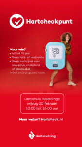 Benieuwd naar u bloeddruk of cholesterol? Kom dan vandaag naar het Hartcheckpunt in Weerdinge!